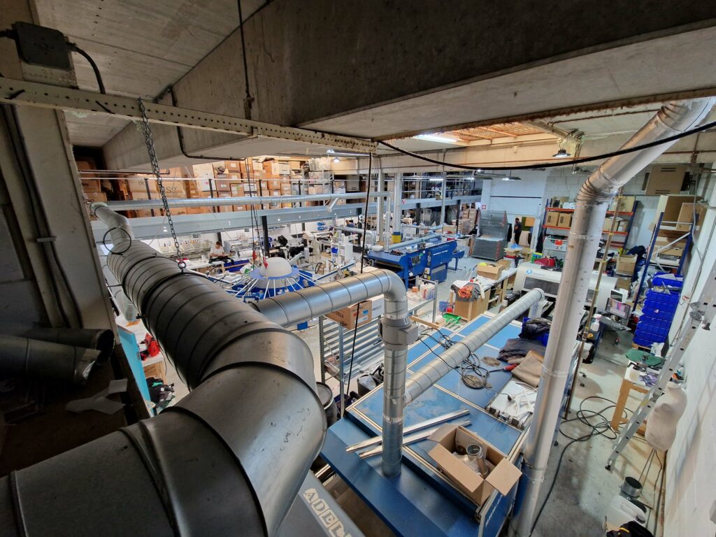 Onze productiehal is een echte fabriek, uitgerust met geavanceerde technologieën zoals een industriële zeefdrukcarrousel, DTG-printer, UV-printer, DTF-printer, borduurmachines en transferdrukmachines (zeef, flex, flock). Neem gerust contact met ons op om een afspraak te maken en alle mogelijkheden te ontdekken!